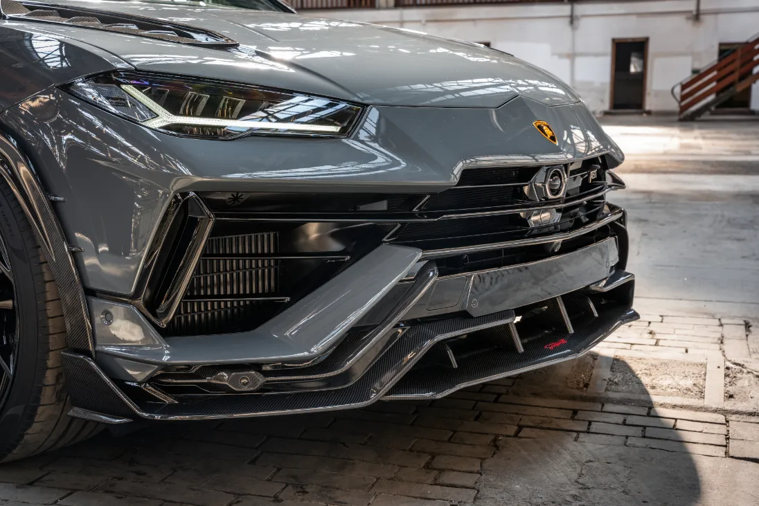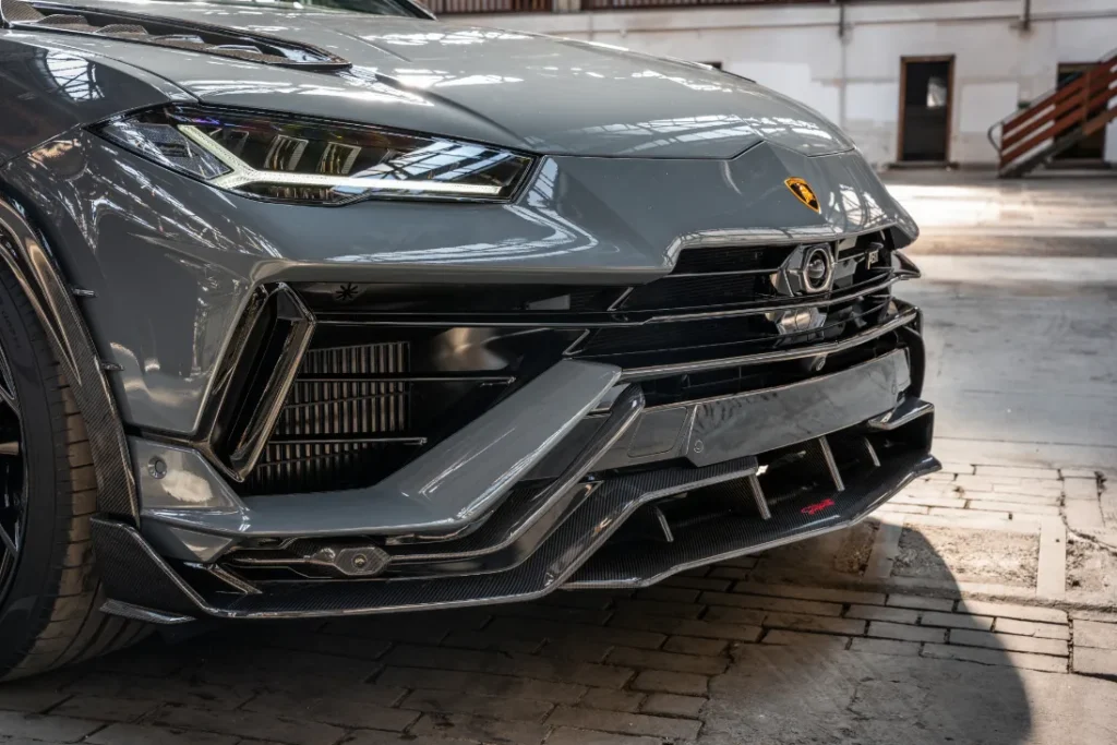 Maska i nakładki błotników, przedni spoiler ze środkowym ostrzem, tylny spojler z lotkami aero, wstawki w tylnym zderzaku, listwy drzwiowe, poszerzenia nadkoli oraz system wydechowy z czterema tytanowymi końcówkami o średnicy 105 mm, perforowaną wewnętrzną rurą i detalami Urusa w matowej czerni budzą należny respekt u obserwatora.